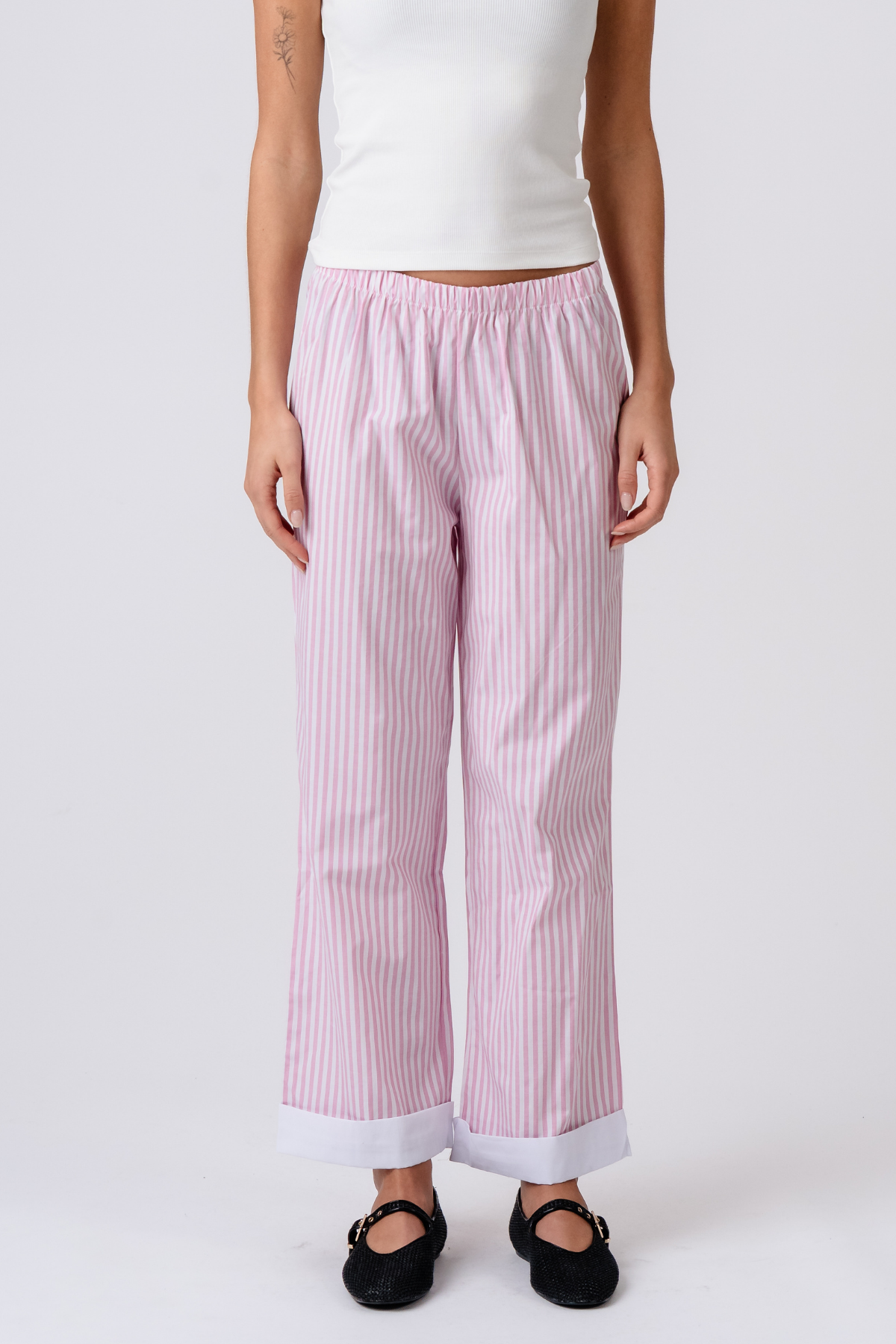 Taithí a fháil ar an meascán foirfe de stíl agus de chompord. Cuir an layla stríocach leis Pants le do chairt inniu!