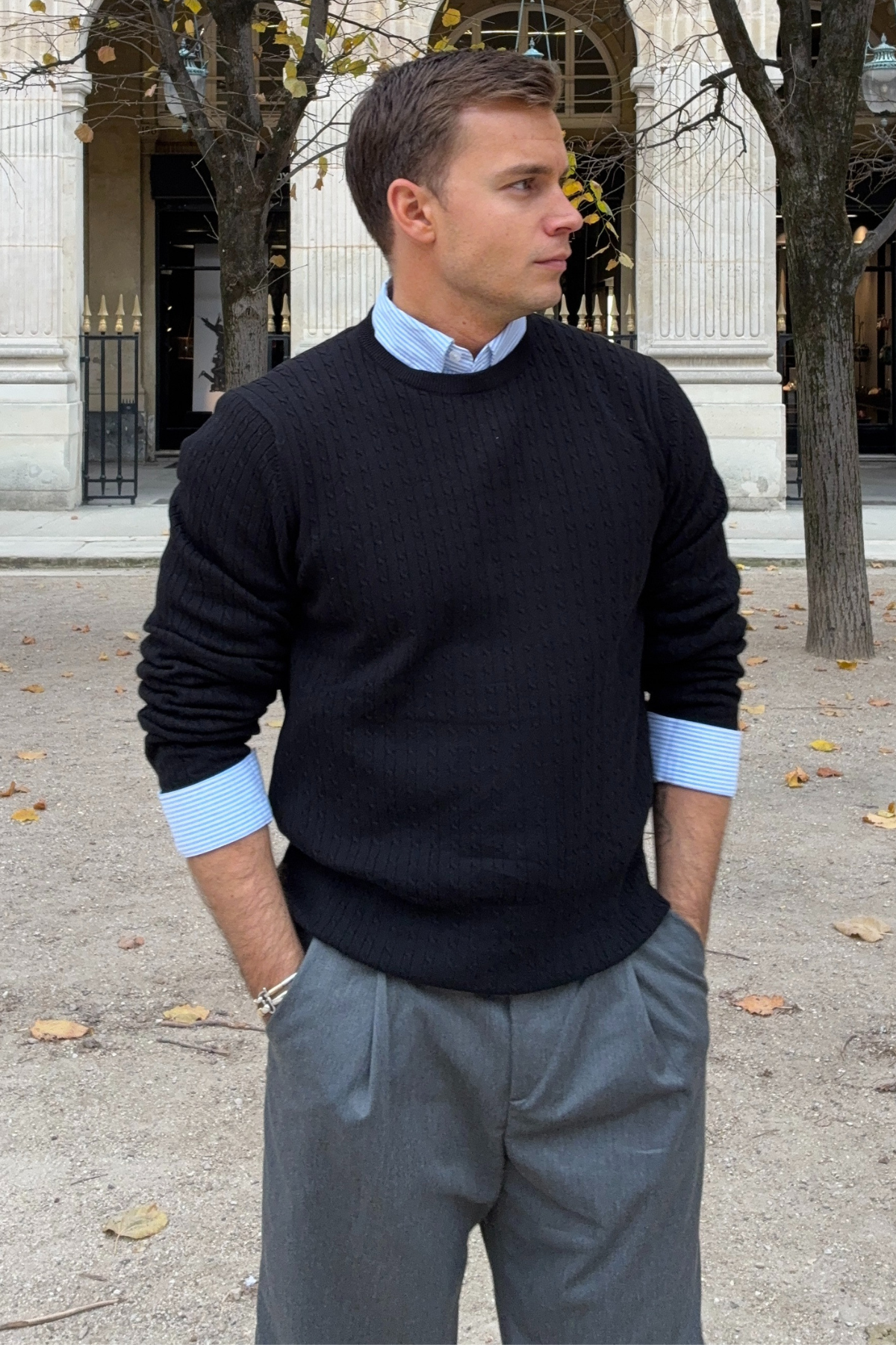 Dizajn okruglog ovratnika i regular kroja čine ovaj pulover nevjerojatno svestranim. Može se odjenuti uz košulju s kragnom i hlače za profinjeni izgled ili ležerno nositi uz traperice za opušteni, ali elegantni komplet.