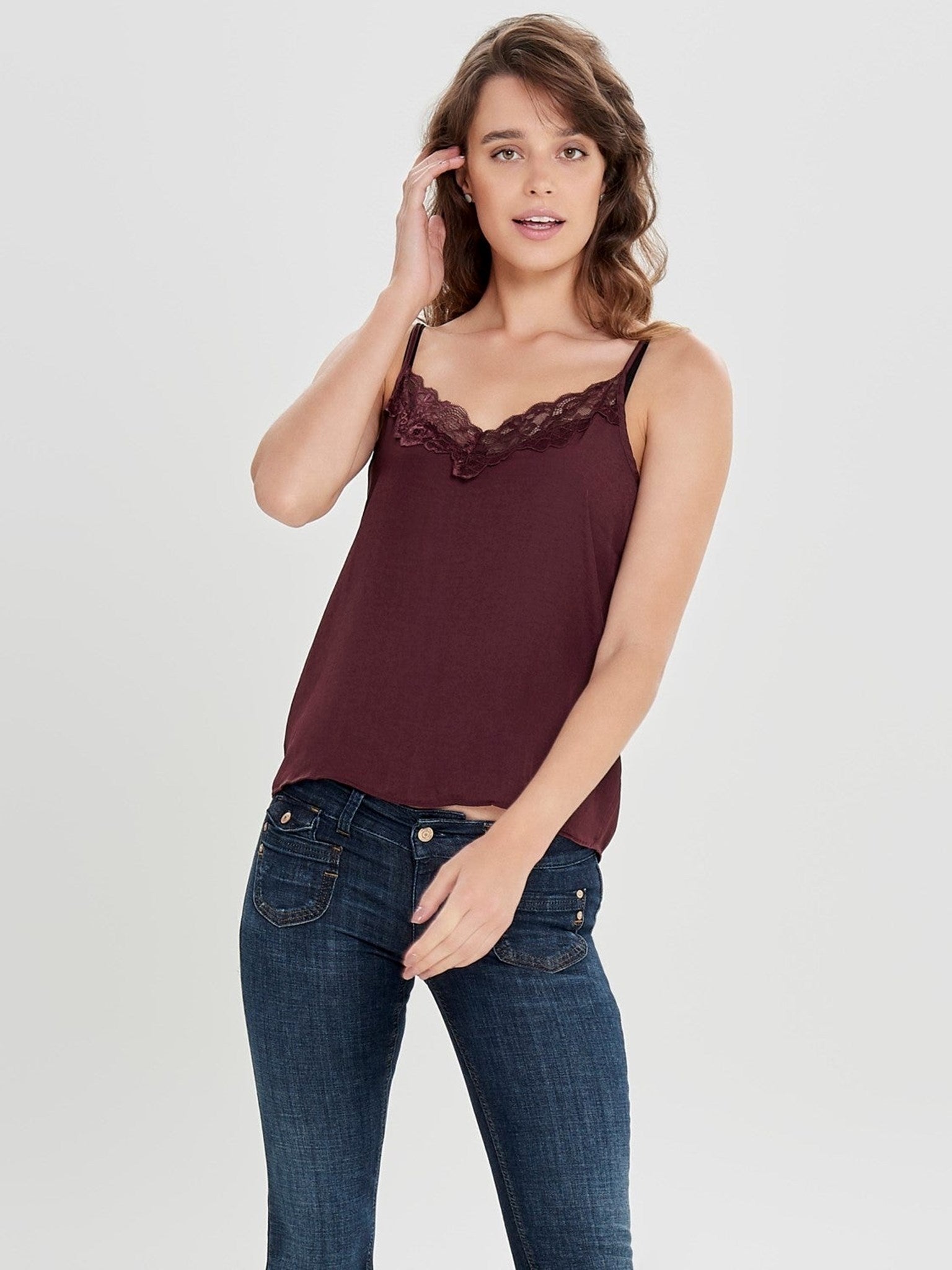 Otkrijte savršenu mješavinu moderne sofisticiranosti i bezvremenske romantike s čipkastim gornjim dijelom iz JDY-ja. Obasjan zadivljujućom Port Royal nijansom, dubokom i luksuznom nijansom bordo, ovaj gornji dio dizajniran je za dojam. to's više od obične odjeće; to's izraz samopouzdanja i gracioznosti, stvoren za ženu koja upravlja svojim danom sa staloženošću i stilom. Od trenutka kada ga navučete, osjetit ćete kako se lagana tkanina lijepo ovija, stvarajući siluetu koja je istovremeno laskava i udobna.
